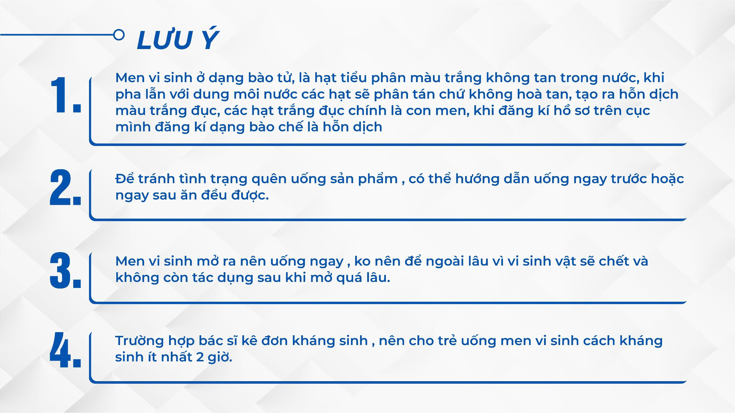 • Bào tử lợi khuẩn bền nhiệt, an toàn khi đi qua môi trường acid dạ dày