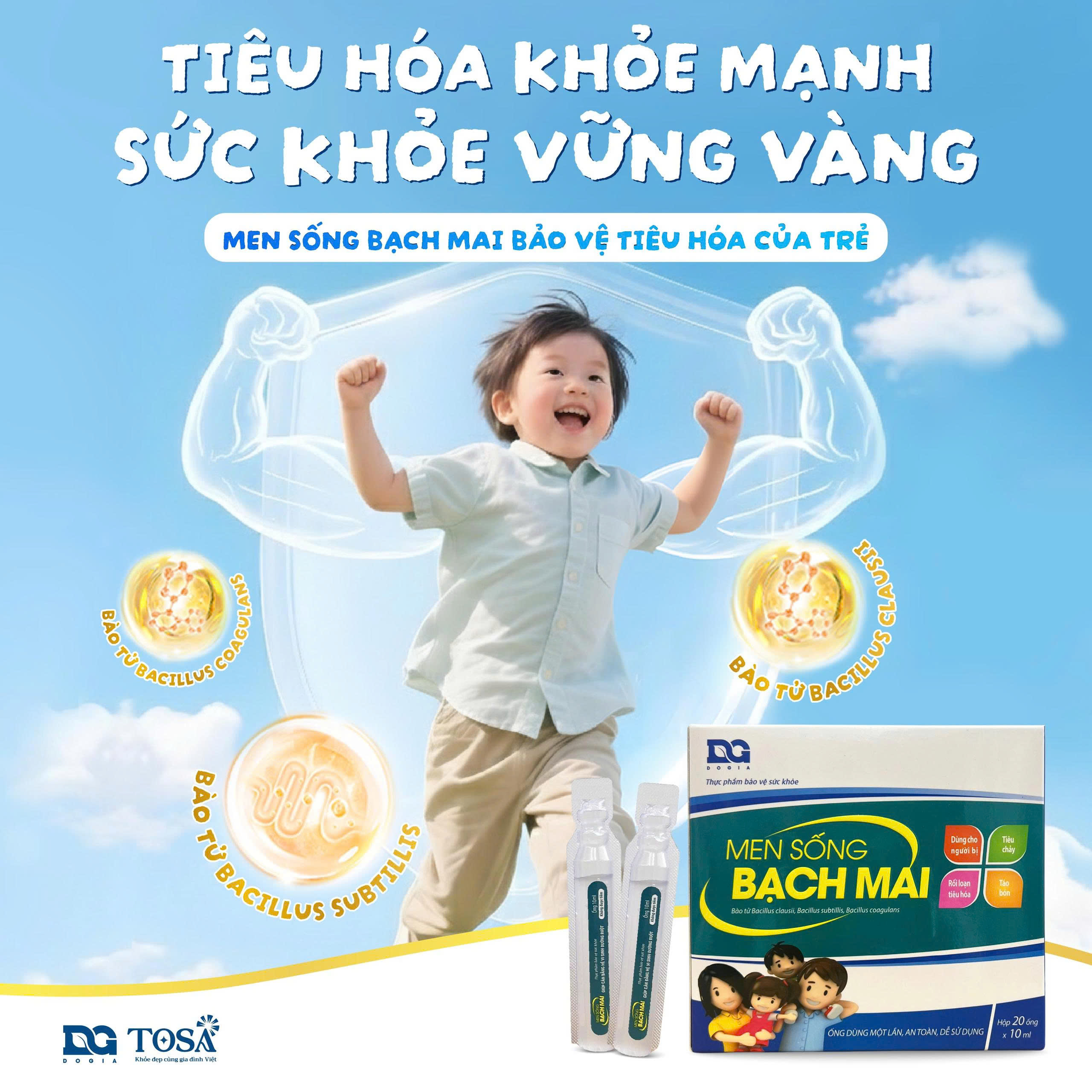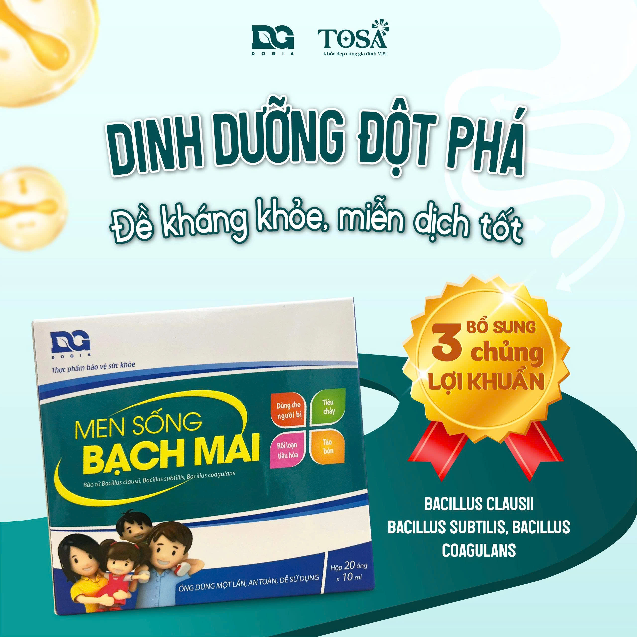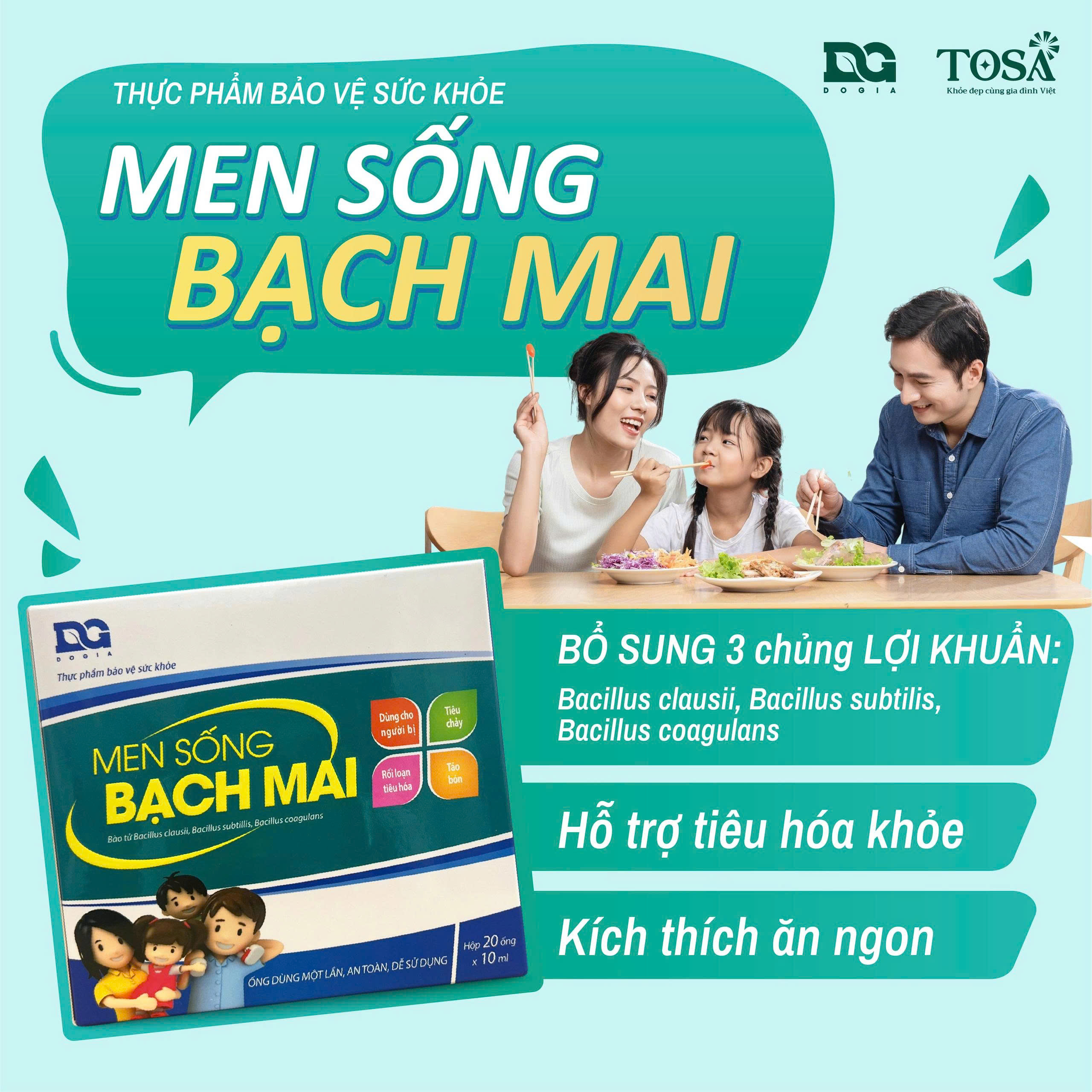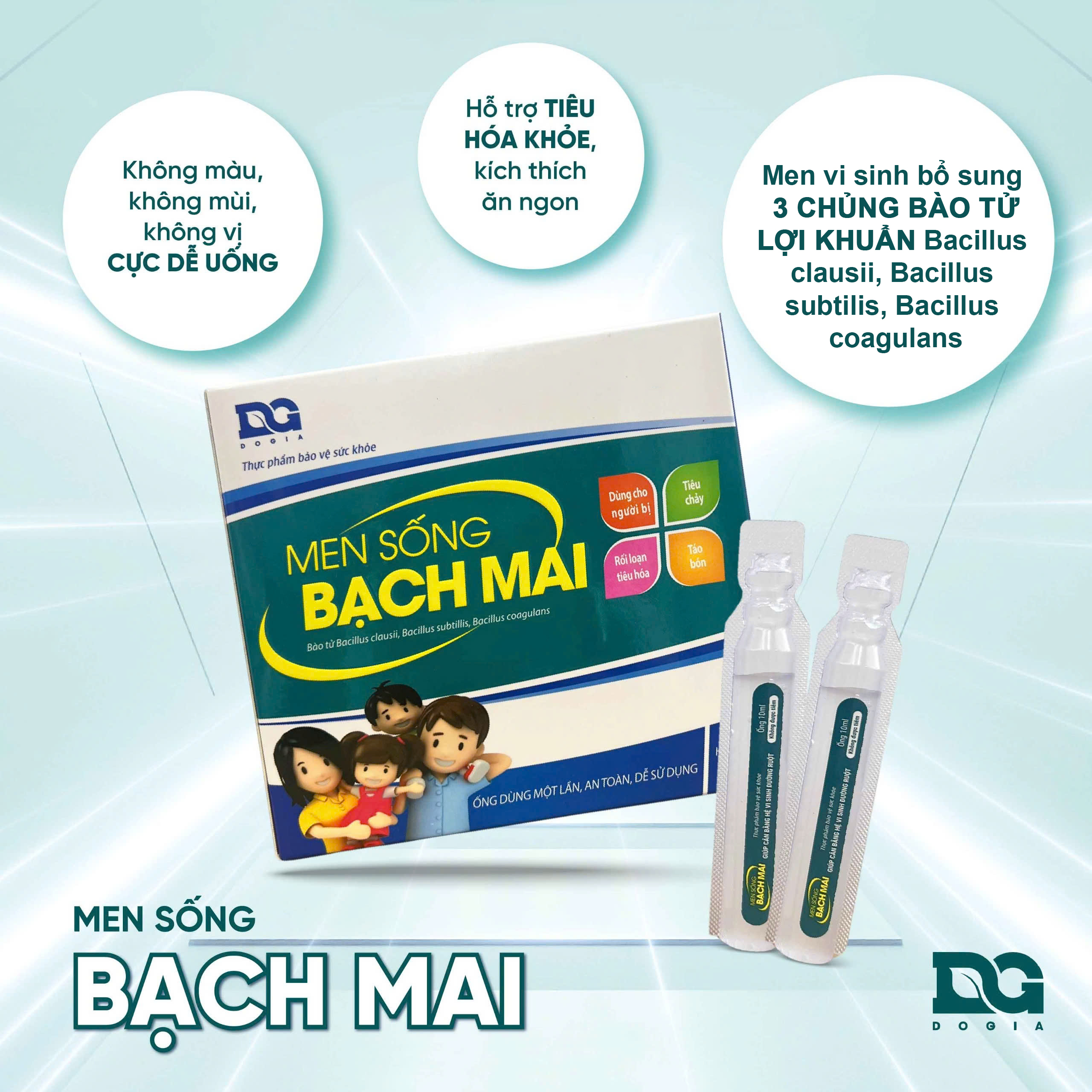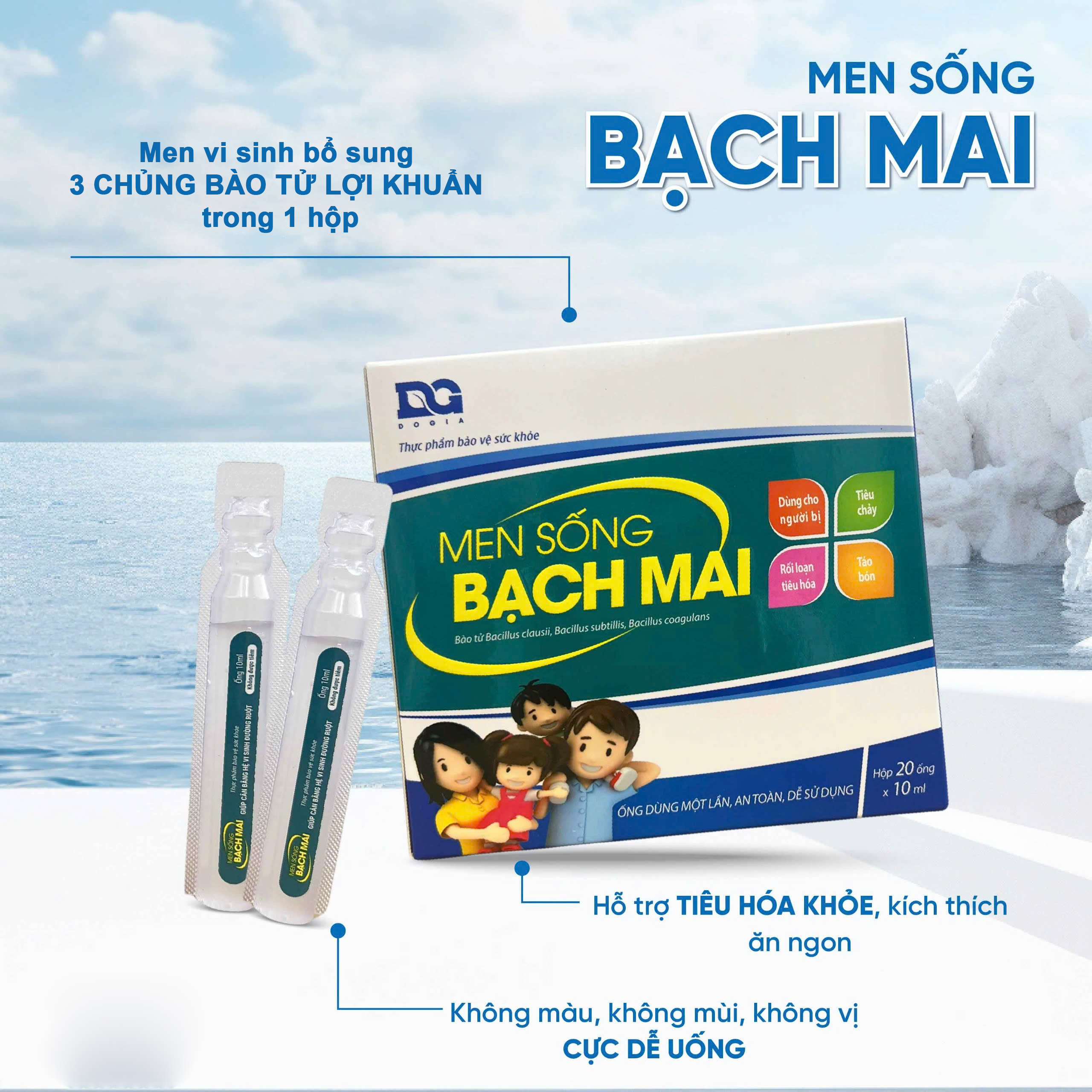 Men Sống Bạch Mai hỗ trợ kích thích tiêu hóa, đẩy nhanh quá trình trao đổi, hấp thu chất dinh dưỡng, giúp trẻ mau đói, ăn ngon miệng một cách tự nhiên, giúp tăng cân hiệu quả. Hỗ trợ giảm táo bón, tiêu chảy, phân sống rối loạn tiêu hoá, giảm thiểu tác dụng phụ của kháng sinh.