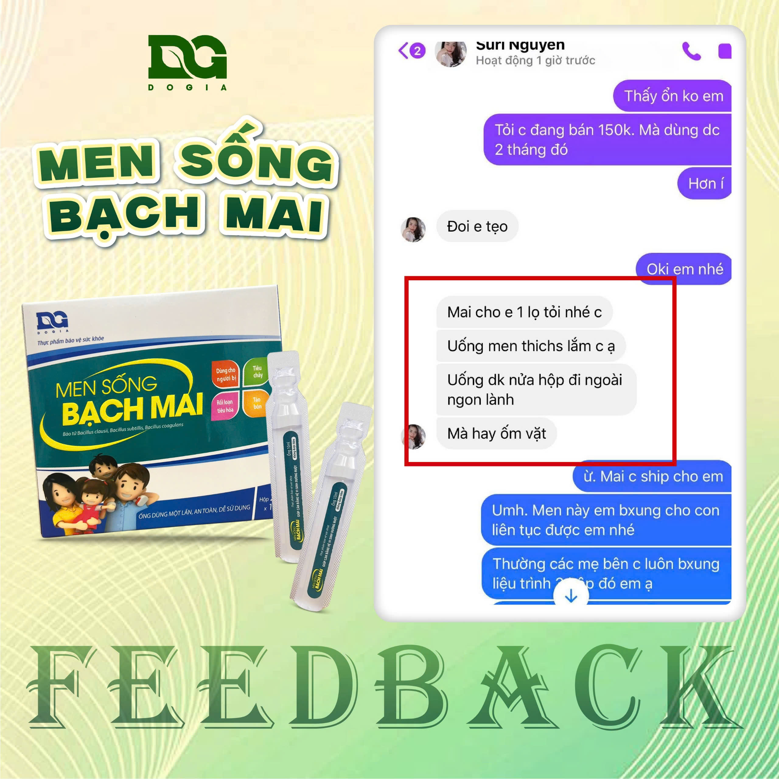 Nhờ có men sống Bạch Mai mà cả nhà mình đã ko còn lo vấn đề táo bón hay tiêu hóa như trước đây nữa, sẽ ủng hộ dài