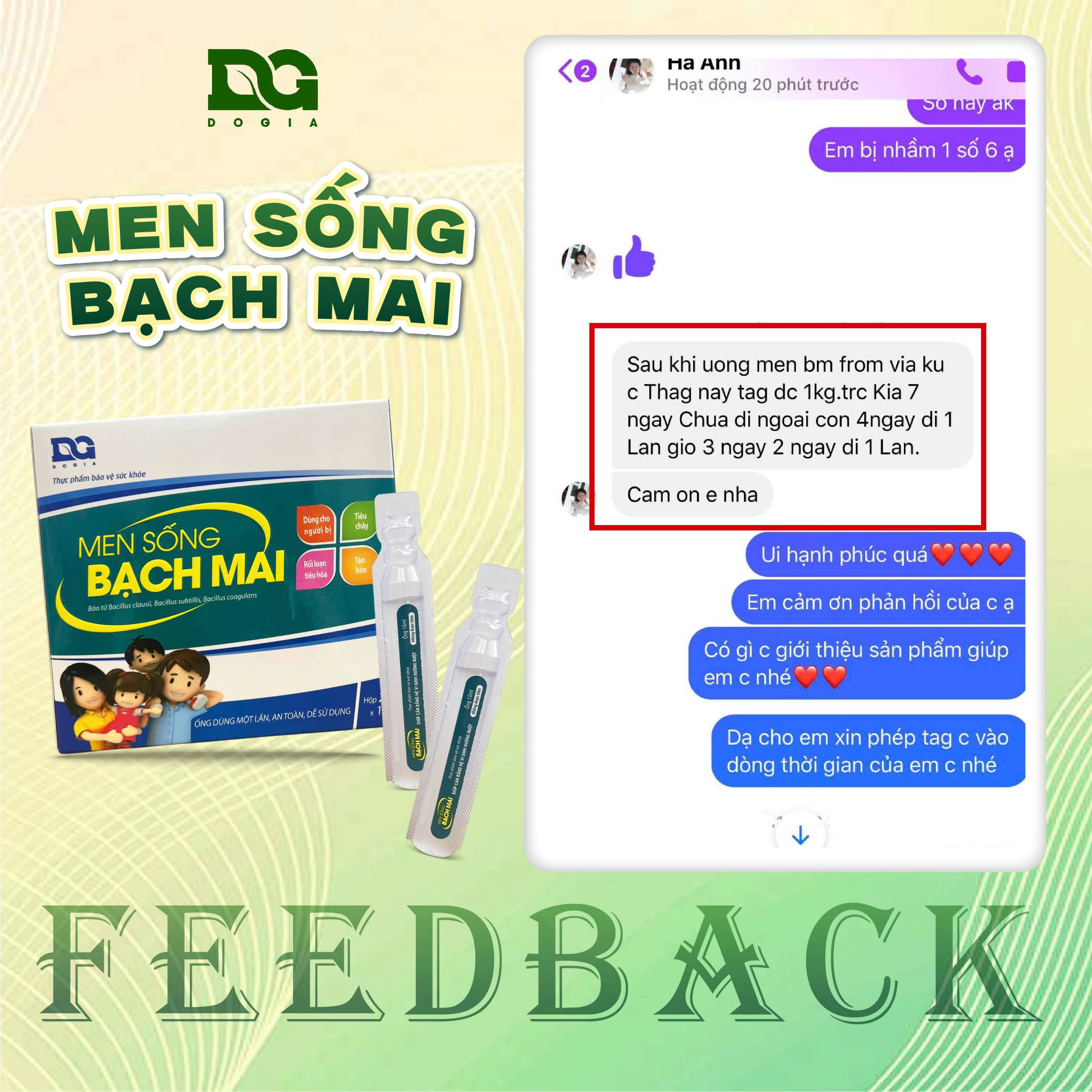 Cảm ơn men sống Bạch Mai rất nhiều, bé nhà mình đã đi ngoài dễ dàng và không còn bị các vấn đề về tiêu hóa nữa