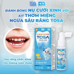 - Xịt thơm miệng ngừa sâu răng tosa giúp làm sạch răng miệng, cuốn trôi các mảng bám trên răng.
