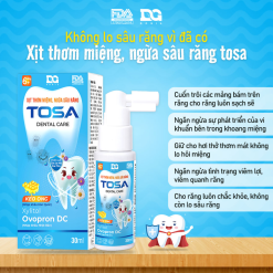 Ovopron Dc- nhập khẩu Nhật Bản: ( một loại kháng thể tự nhiên được chiết xuất từ lòng đỏ trứng gà ) dùng an toàn cho trẻ 6 tháng tuổi, phụ nữ mang thai và phụ nữ đang cho con bú, có tác dụng cân bằng và tạo môi trường an toàn trong khoang miệng, loại bỏ các mảng bám và vi khuẩn gây sâu răng, giúp ngăn ngừa sâu răng, sún răng, viêm lợi, cho trẻ hàm răng sữa khỏe mạnh.